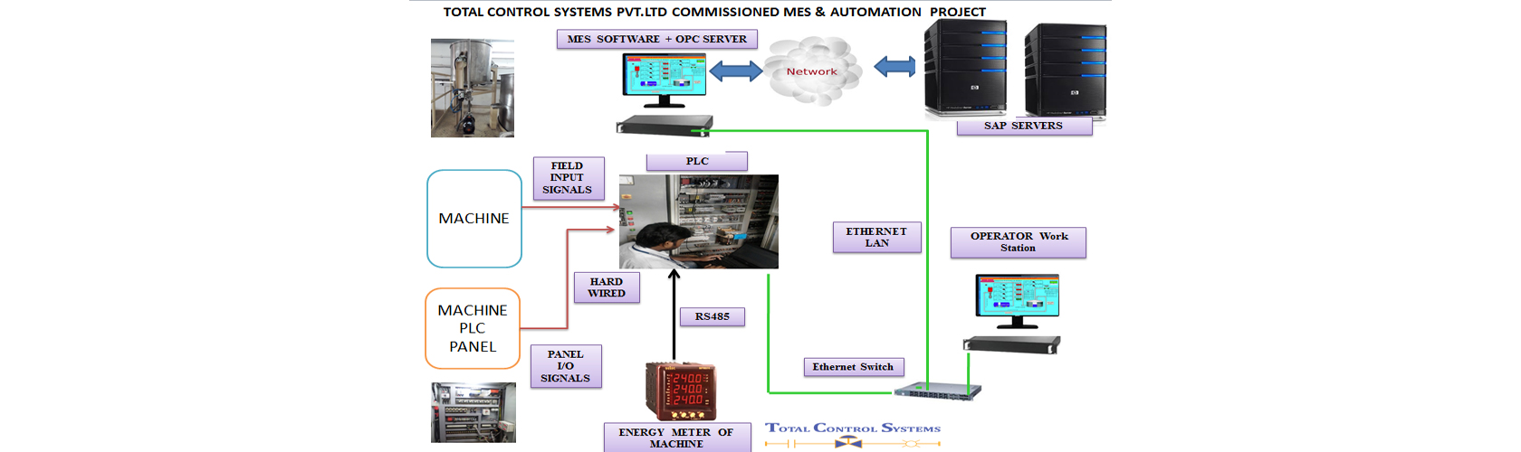 • TOTAL CONTROL SYSTEMS PVT.LTD apart from successfully executing Numerous Turnkey Control & Instrumentation Projects also have successful installation of Manufacturing Execution Systems (MES), Barcode Systems, Vision Systems, Remote Site Maintenance Systems etc.